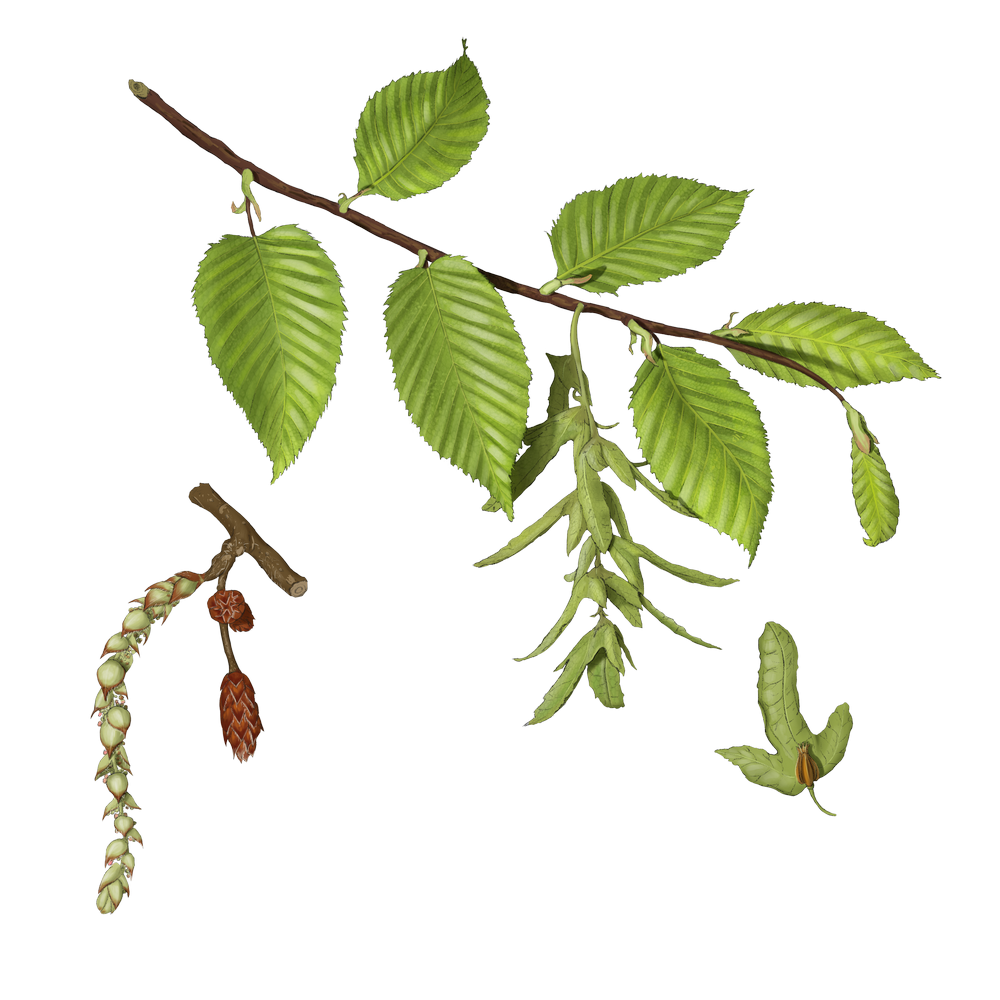 Arbre de taille moyenne (jusqu’à 20m), le Charme commun se reconnaît à ses feuilles dentées et sans poils, ce qui les distingue des feuilles du Hêtre, poilues et non dentées, d’où “Le Charme d’Adam, c’est d’être à poil”.